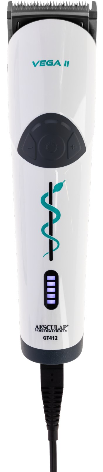 Die komplett überarbeitete Veterinär-Tierschermaschine Vega II mit 3 Geschwindigkeitsstufen überzeugt mit einen neuen, leistungsstarken Akku für bis zu 3 Stunden Laufzeit, sowie mit einer elektronischen Leistungssteuerung "Speed Control", die jede noch so schwierige Fellsorte verlässlich abschert.