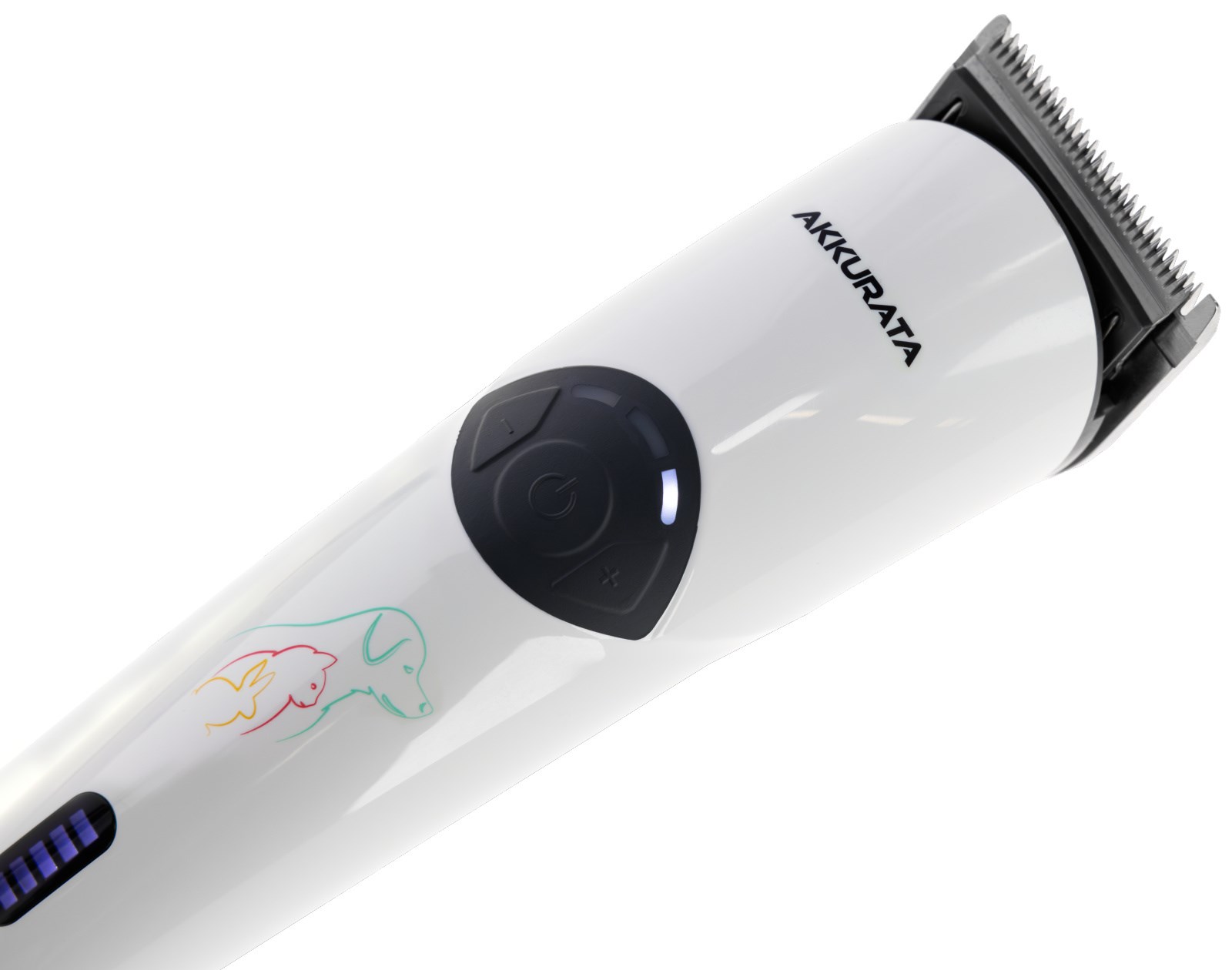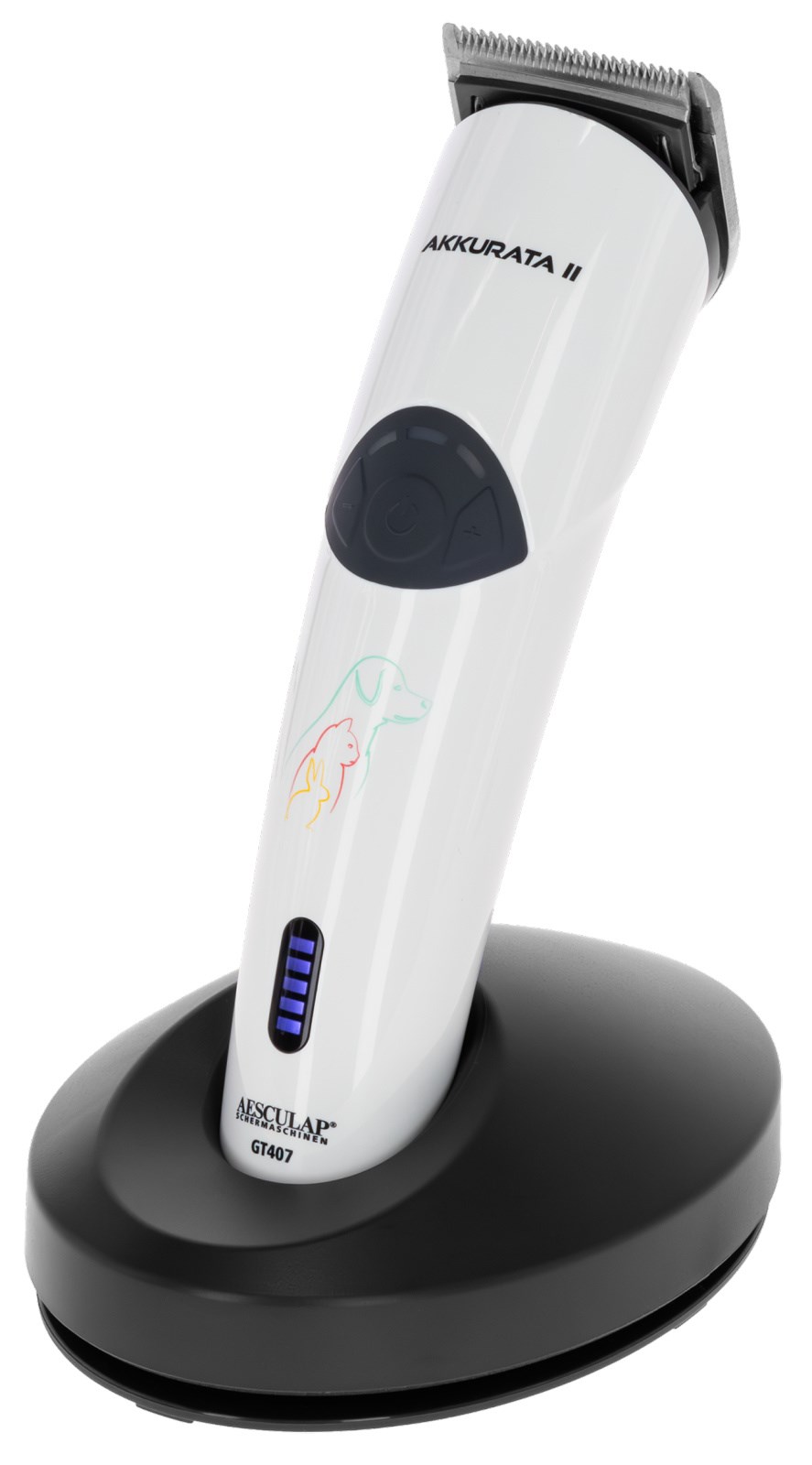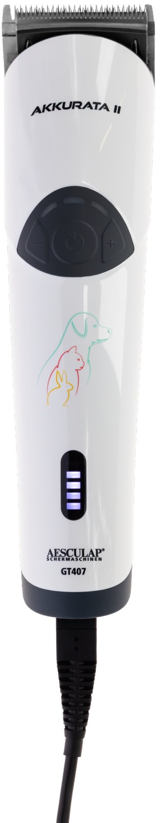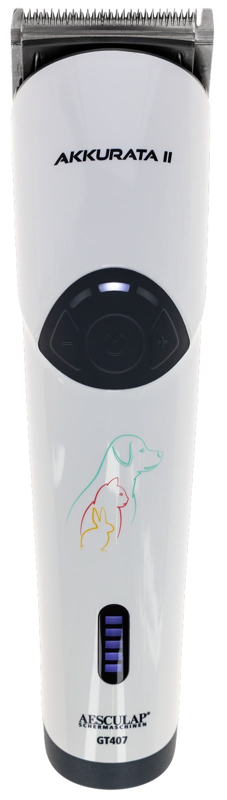 Die komplett überarbeitete Tierschermaschine Akkurata II mit 3 Geschwindigkeitsstufen überzeugt mit einem neuen, leistungsstarken Akku für bis zu 3 Stunden Laufzeit, sowie mit einer elektronischen Leistungssteuerung "Speed Control", die für ein perfektes Schervergnügen sorgt.