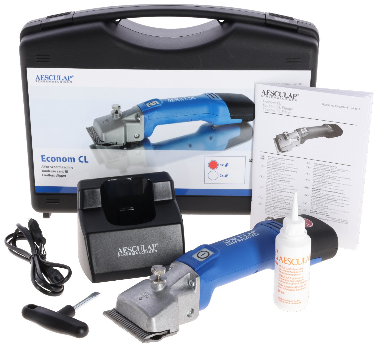 Leistungsstarke kabellose Aesculap Econom CL Schermaschine für Rinder und Pferde. Ergonomisch, langlebig und kraftvoll mit hoher Scherleistung und Akku.