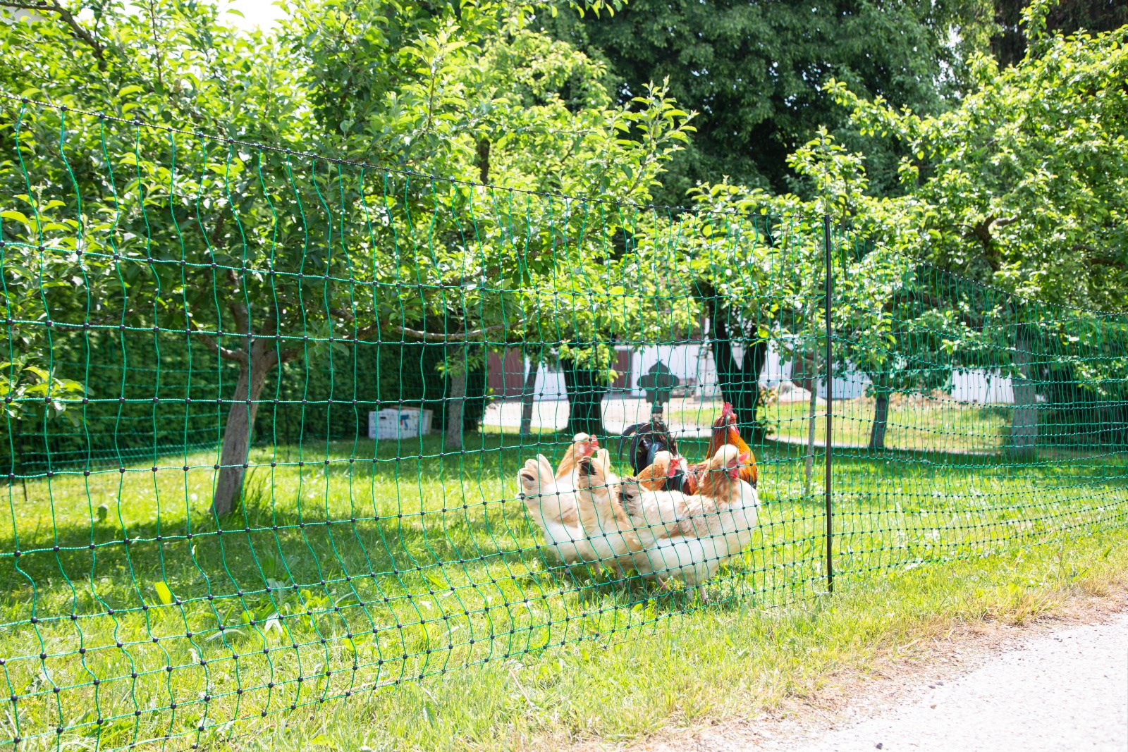 Das Geflügelnetz ist besonders robust verarbeitet und kann optional elektrifiziert werden, um die Sicherheit zusätzlich zu erhöhen.