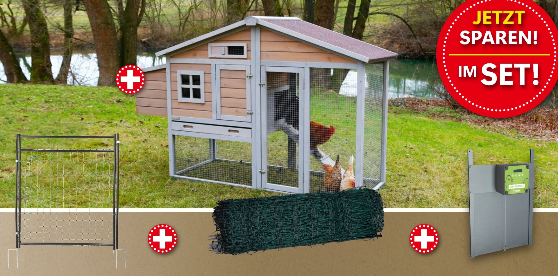 Starte direkt mit einer sicheren und komfortablen Hühnerhaltung – alles in einem Set, perfekt aufeinander abgestimmt
