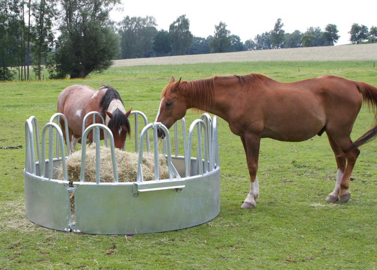 Diese stabile und langlebige Heuraufe eignet sich perfekt für den Einsatz im Stall oder auf der Weide und gewährleistet eine gleichmäßige Verteilung des Futters.