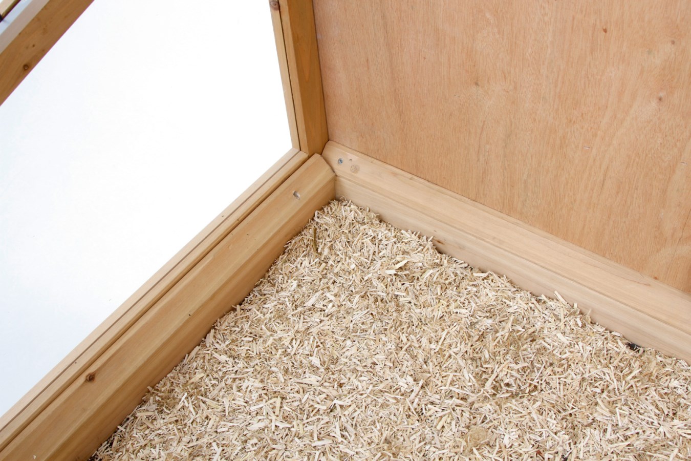 Durchdachtes Design: Ein häufiges Problem bei Indoorställen ist, dass sich Einstreu in der ganzen Wohnung verteilt. Das soll die erhöhte Umrandung bei diesem Käfig vermeiden. Damit Ihre Vierbeiner dennoch genug Licht bekommen, ist er mit Plexiglaseinsätzen für guten Ein- und Ausblick versehen.