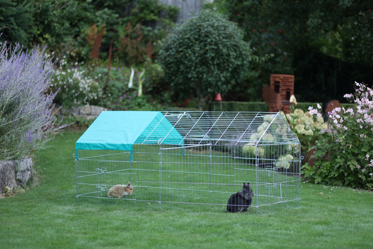 - 1x Freilaufgehege aus verzinktem Metall mit Sonnenschutz