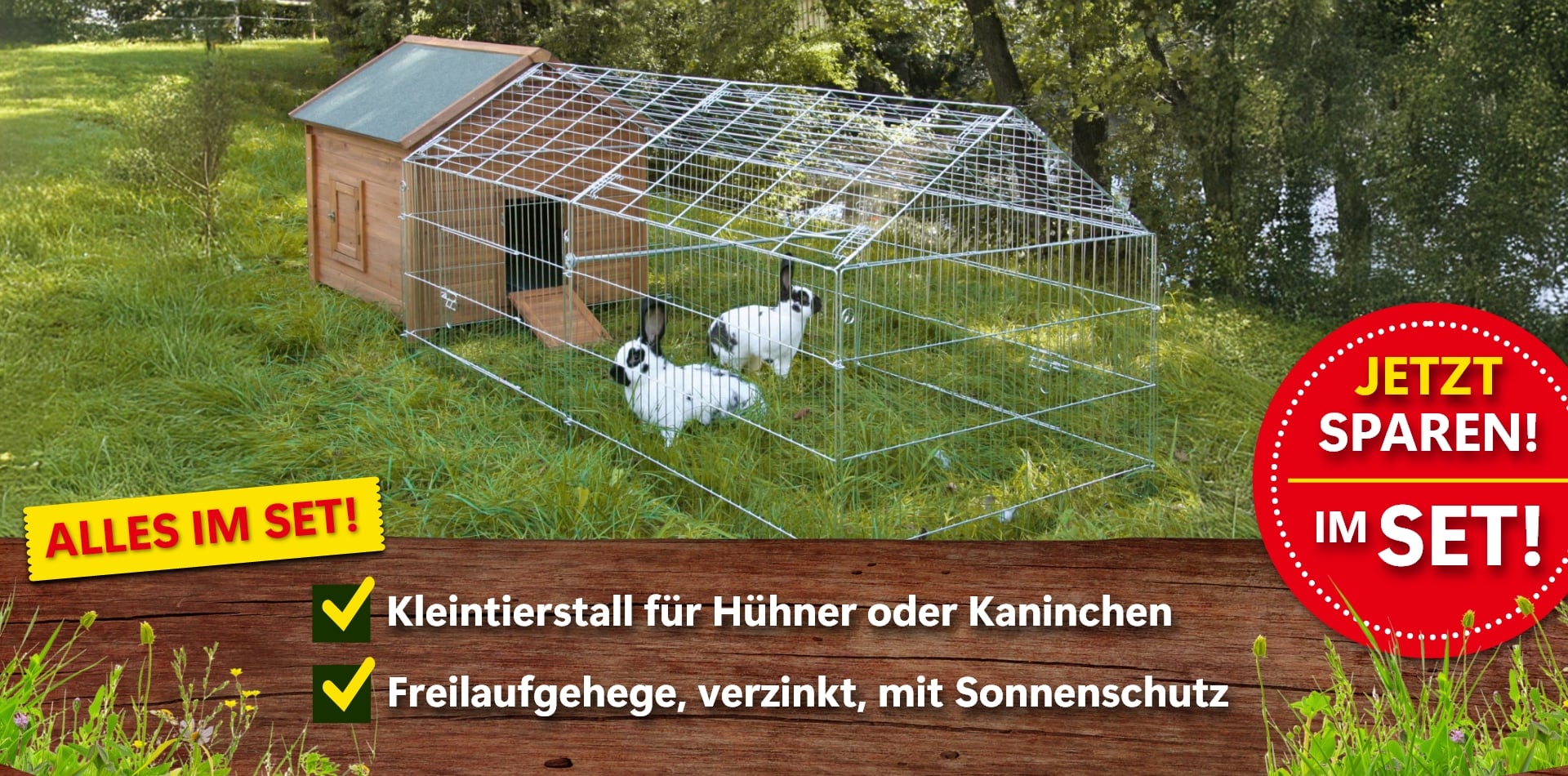 Kleintierstall & Freilaufgehege Set für Hühner und Kaninchen