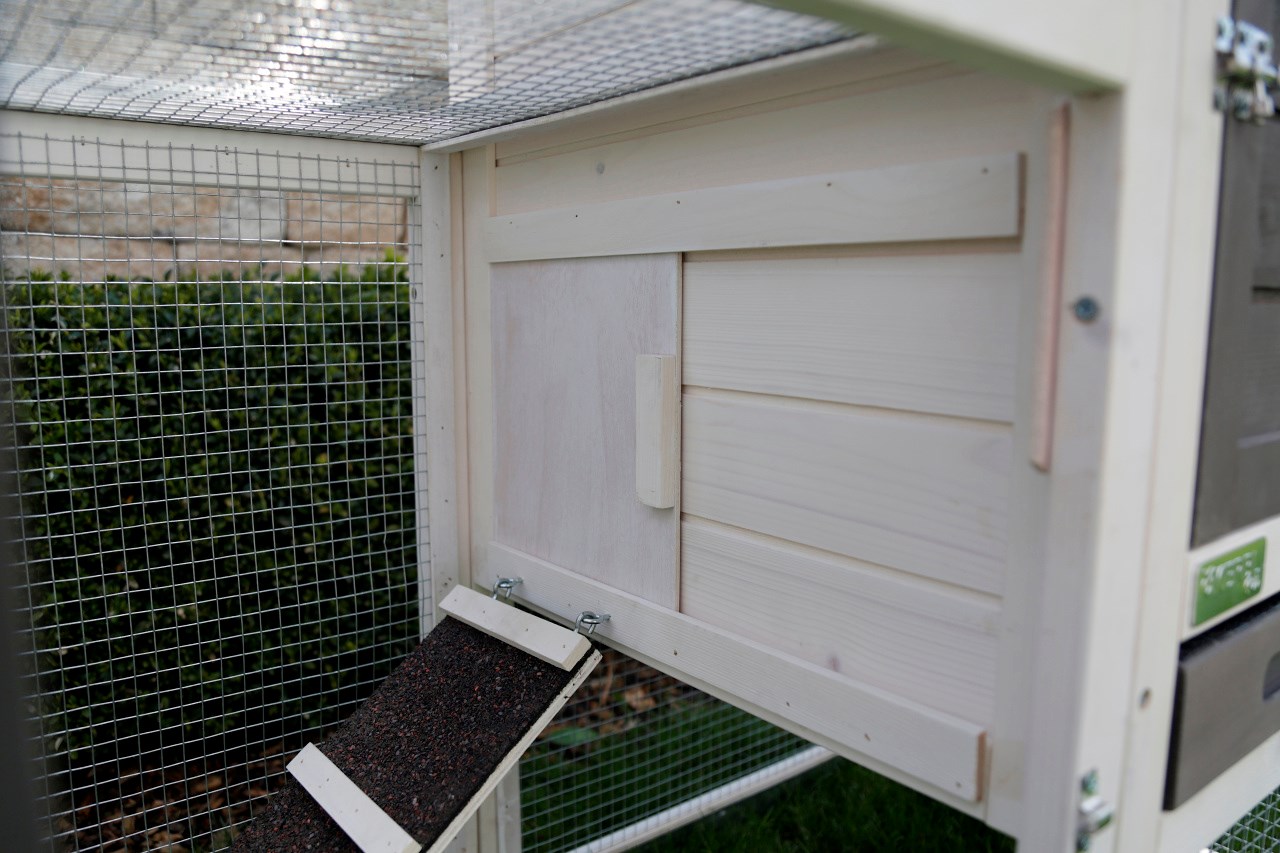 Praktische Absperrmöglichkeit: Dank der integrierten Absperrmöglichkeit zwischen dem Freilaufgehege und dem Ruhebereich haben Sie die volle Kontrolle über die Bewegung Ihrer Nager, wodurch Aktivitäten und Ruhephasen optimal gestaltet werden können. Eine Rampe ermöglicht einen einfachen Zugang zum Freilauf.